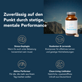 Die innovative Formel kombiniert essenzielle Nährstoffe mit zusätzlichen Vitaminen und Mineralstoffen, die die Bioverfügbarkeit der Hauptwirkstoffe verbessern. Vitamin B5 fördert den Stoffwechsel von Neurotransmittern und unterstützt so Denkprozesse, während andere B-Vitamine zu mentaler Balance beitragen. So wird dein Gehirn rundum versorgt – für mehr Klarheit, Leistungsfähigkeit und Konzentration im Alltag.